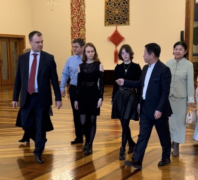 В рамках визита чрезвычайный и полномочный посол Китайской Народной Республики в Российской Федерации Чжан Ханьхуэй с супругой провел экскурсию по посольству, рассказав об истории и традициях Китая. Также состоялись показ искусства китайской каллиграфии, знакомство с историей традиционных чайных церемоний и китайской традиционной одежды. Далее…